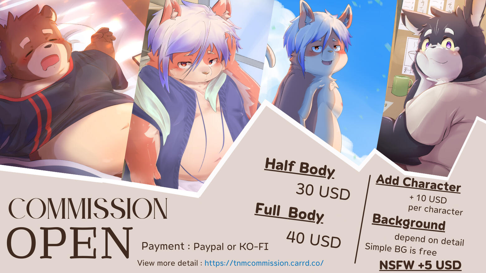 หากต้องการจะทำเป็นSFW หรือ NSFW รบกวนแจ้งก่อนเริ่มงาน (ขออนุญาติไม่เปลี่ยนกลางคัน ถ้าเริ่มแบบไหนไปแล้วจะต่อจนจบงานเลย)